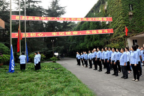 9月30日上午8點整,雄壯的國歌在(集團)公司辦公樓前響起來。國歌聲中,鮮紅的國旗緩緩升起來,公司100多名員工向著國旗行注目禮。