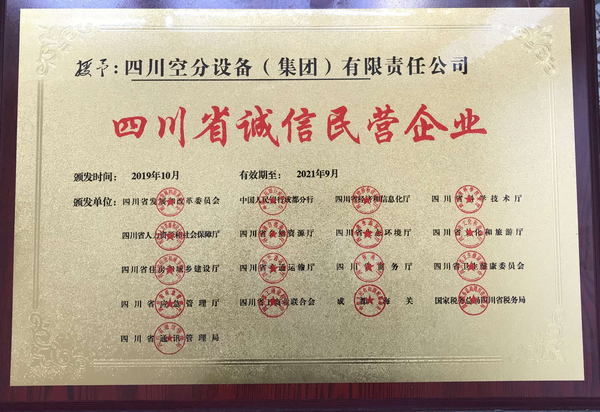 近日,我公司在四川省首屆民營企業“誠信百千工程”評選活動中,被評為“四川省誠信民營企業”,并被頒發榮譽證書。