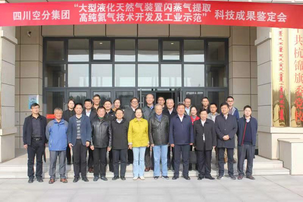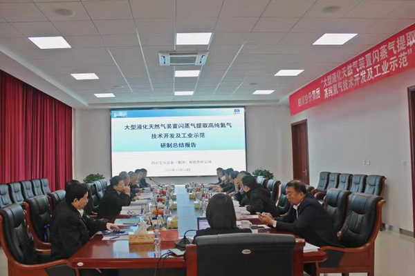 2020年11月13-14日,四川空分設備(集團)有限責任公司自主研發的“大型液化天然氣裝置閃蒸氣提取高純氦技術開發及工業示范”項目在內蒙鄂爾多斯杭錦旗現場順利通過科技成果鑒定,鑒定委員會認為:該裝置是國內首套年產百萬方級氦氣的液化天然氣閃蒸氣提氦裝置,其主要性能指標達國際先進水平。