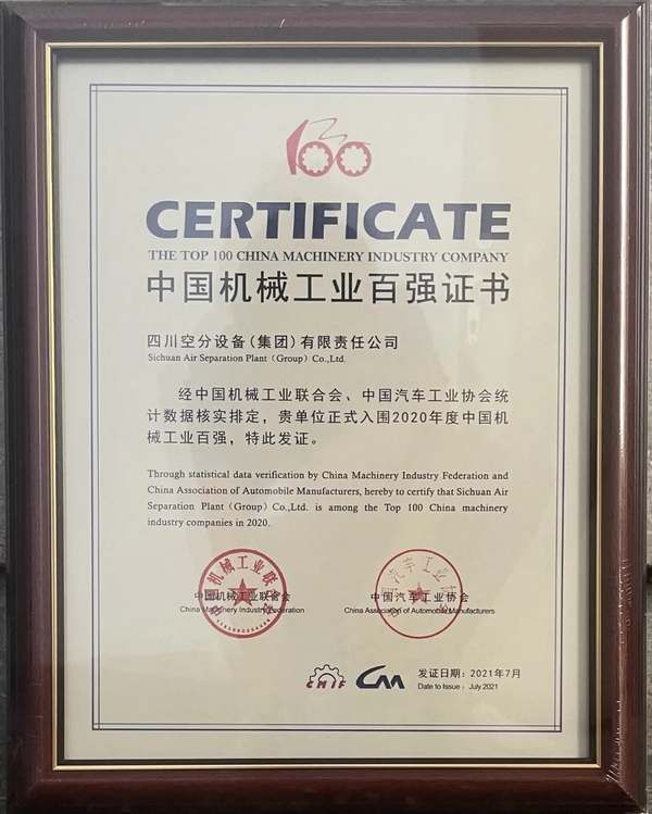 經中國機械工業聯合會、中國汽車工業協會統計數據核實排定,我公司正式入圍2020年度中國機械工業百強(位列第78位)。