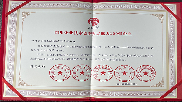 我公司生產(chǎn)的“LNG冷能空分設備”——被評為“四川制造好產(chǎn)品”