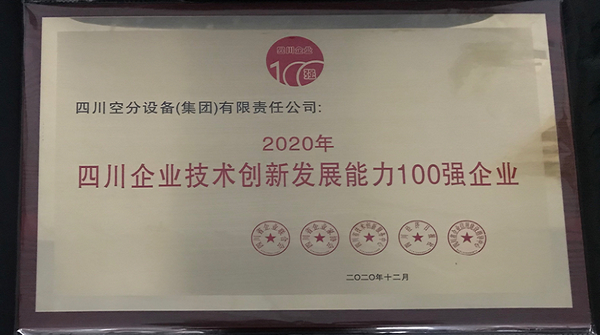 我公司榮獲2020年——“四川企業(yè)技術創(chuàng)新發(fā)展能力100強企業(yè)”