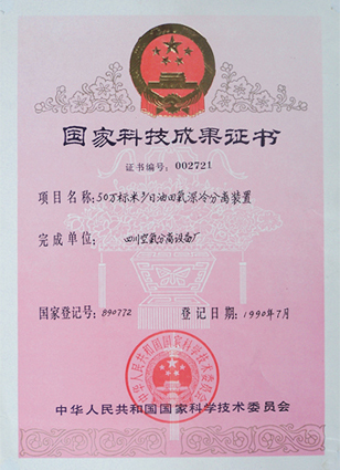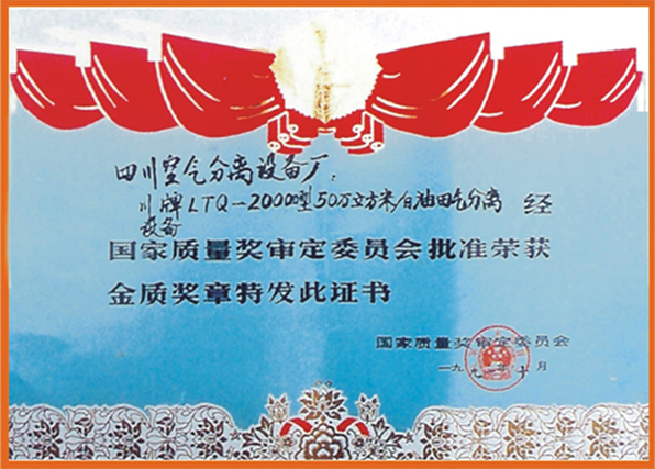由川空集團公司開發的50×104Nm3/d油田氣分離成套設備曾獲國家科技成果二等獎及國家質量金獎。