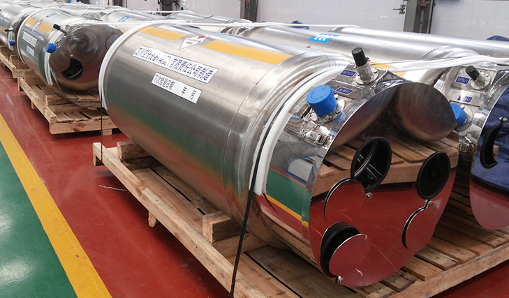 汽車用液化天然氣氣瓶 公司研發制造的150L—495L系列汽車用液化天然氣氣瓶。已經裝備到多個城市公交車、重卡、工程用車上。公司生產的低溫焊接絕熱氣瓶取得了B3類證書,具有蒸發率低,結構緊湊,操作簡便,安全可靠,氣液兩用的特點,適用于液氧、液氮、液氬等低溫液體儲存。